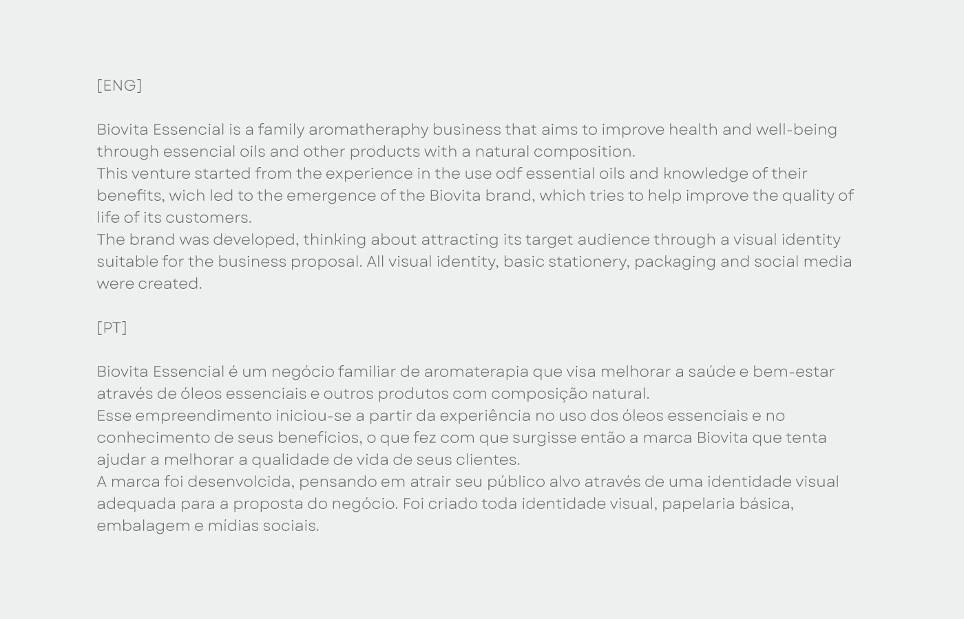 Biovita Essencial é um negócio familiar de aromaterapia que visa melhorar a saúde e bem-estar através de óleos essenciais e outros produtos com composição natural.